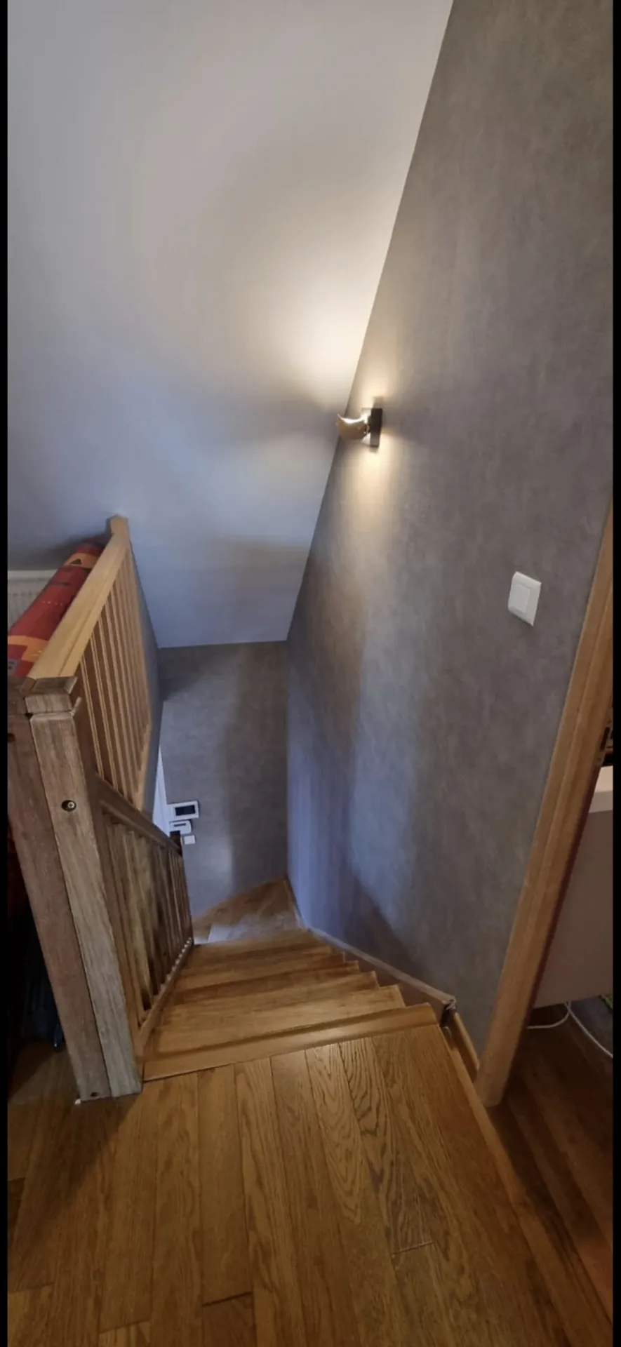 Et quant à la cage nous avons effectué un ponçage, une impression et appliquer un papier peint sur l'ensemble des murs.
